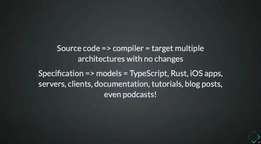 如果大家寫過 Type 或者 Rust,那么代碼總會經過編譯器被編譯或轉換成二進制文件。這個二進制文件不重要,源規(guī)范才是核心所在、才是真正有價值的部分。