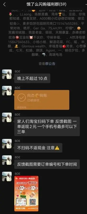 線上促銷這一次淘寶閃購還把社群利用了起來,在一個叫做“餓了么閃購福利群”里,有組織者稱“淘寶掃碼下單就能返現2元”。補貼力度恐怖到,相當于1.9元下單奶茶,返現金2元,平臺還要倒貼1毛。