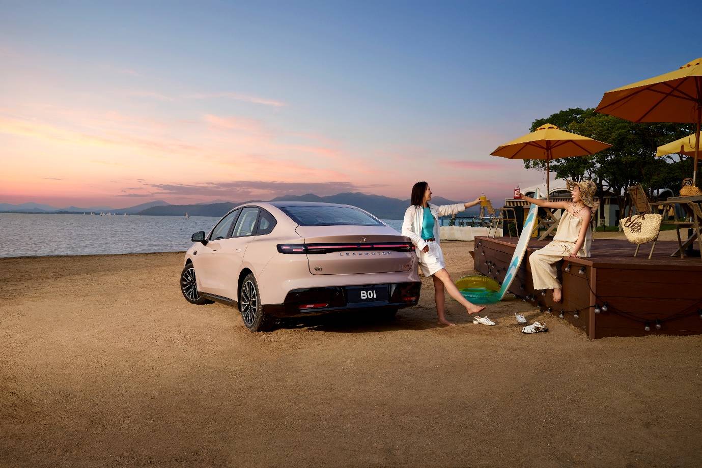 現在的年輕人選車,顏值是 “第一印象”。零跑B01的 “天梭流體車身” 挺會抓眼球 ——0.197 的超低風阻系數,跑起來像一道光;摩根粉的配色是和 Pantone 聯合調的,陽光下像馬達加斯加的摩根石,開在路上回頭率不輸幾十萬的車。
