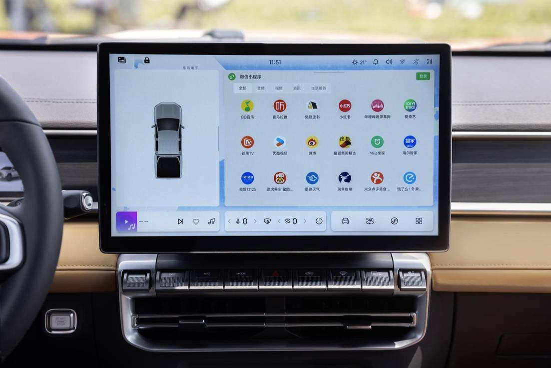 坐進車內前排,威麟 R08 搭載的 15.6 英寸高清大屏雖然已將核心功能統一集成,卻還是特意保留了鋼琴鍵式機械按鈕 —— 這是對皮卡用戶群體的貼心考量:低速通過越野路段時,車輛顛簸搖晃,駕駛者緊盯前方復雜路況,無暇低頭操作屏幕。此時,僅憑指尖就能快速盲按機械按鈕。這種“功能雙選項” 的設計,讓不同需求的用戶都能找到順手的交互方式。