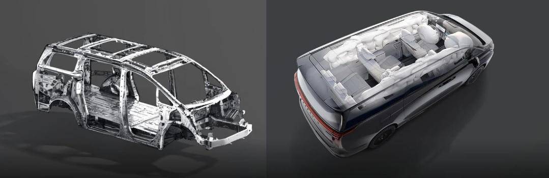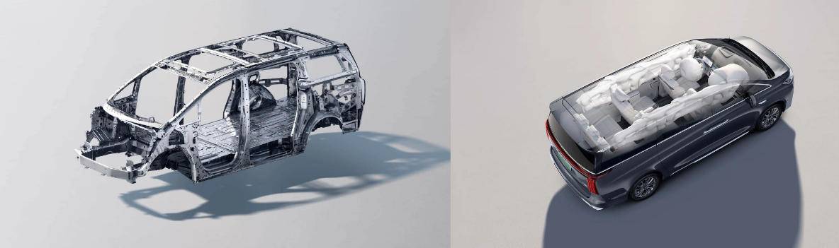內(nèi)部設(shè)計(jì)的高度重合更引人關(guān)注。車內(nèi)百變場(chǎng)景動(dòng)畫、籠式車身結(jié)構(gòu)及氣囊等細(xì)節(jié)圖,均采用高山相關(guān)圖片進(jìn)行修改,甚至只做了鏡像處理。這種程度的相似不可能是巧合。