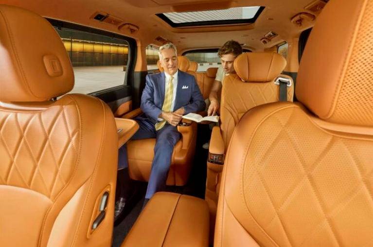 車內(nèi)配置強(qiáng)調(diào)豪華與智能。包括零重力座椅(帶按摩功能)、全溫區(qū)冰箱、智能大屏及多模態(tài)交互系統(tǒng)。提供三種座椅布局:2+2四座、2+2+2六座、2+2+3七座,其中四座版配備隔斷設(shè)計(jì)與后排巨幕電視。