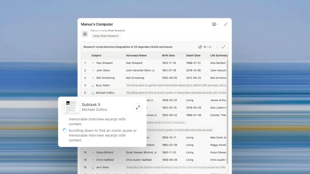 本周四,知名初創公司 Manus 推出了一項重要新功能,可以通過向上百協同工作的 AI 智能體分配任務來進行廣泛的研究。