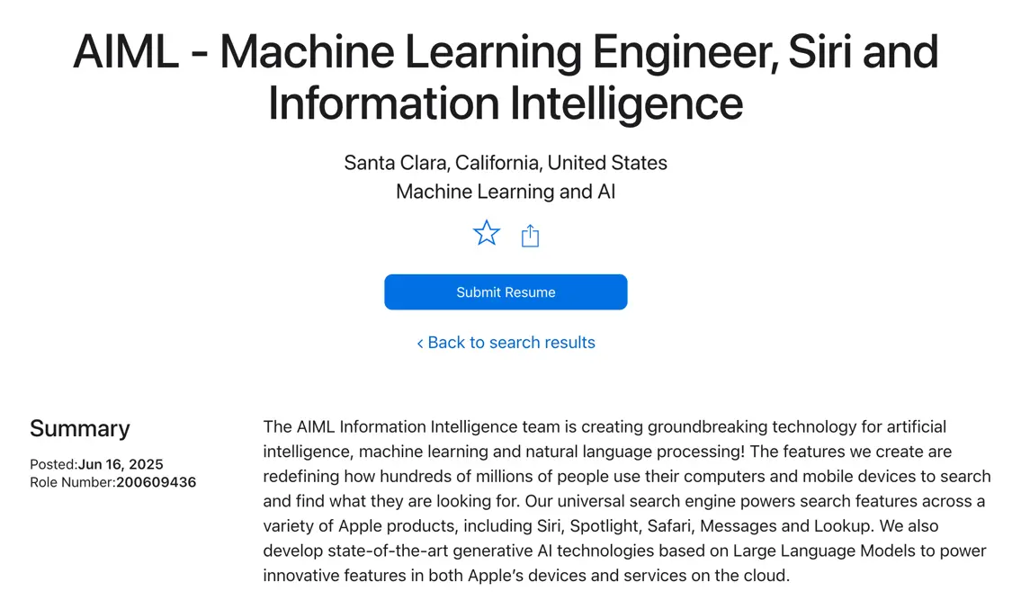 據悉,這個團隊由「AI Siri」的前負責人高級總監 Robby Walker 領導,向 AI 主管 John Giannandrea 匯報工作。蘋果也已經開始了針對該團隊的招聘活動,提到了搜索算法和搜索引擎方面的經驗需求,信息中還提到了 Siri、Spotlight、Safari 產品。