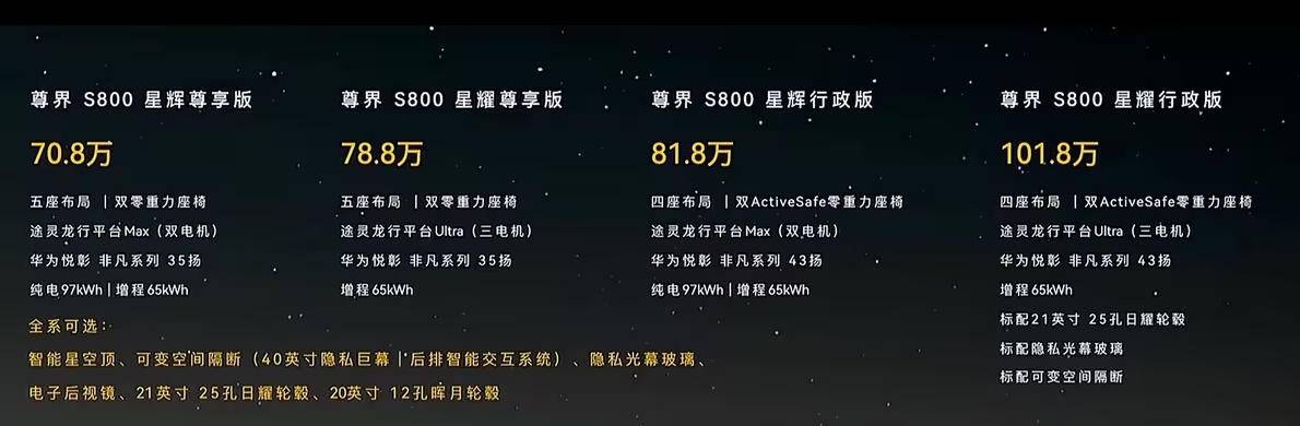 內(nèi)部空間上,車輛預(yù)計(jì)會(huì)提供4座、6座和7座等多種座椅布局,參考尊界S800內(nèi)飾的奢華程度,我猜測(cè)尊界L900的內(nèi)飾可能也會(huì)有過(guò)之而無(wú)不及。