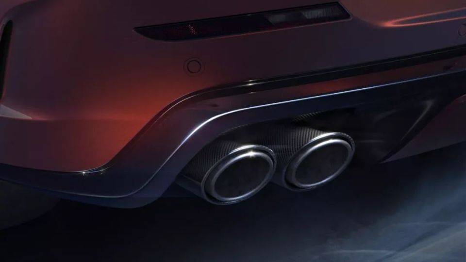 車身尾部,較為方正,車頂配備兩個鯊魚鰭,頂部配備高繞流版,尾穿稍微有點傾斜度,扁平化的尾燈組,層次感十足,使用雙邊四出排氣管,材料為碳纖維套件。