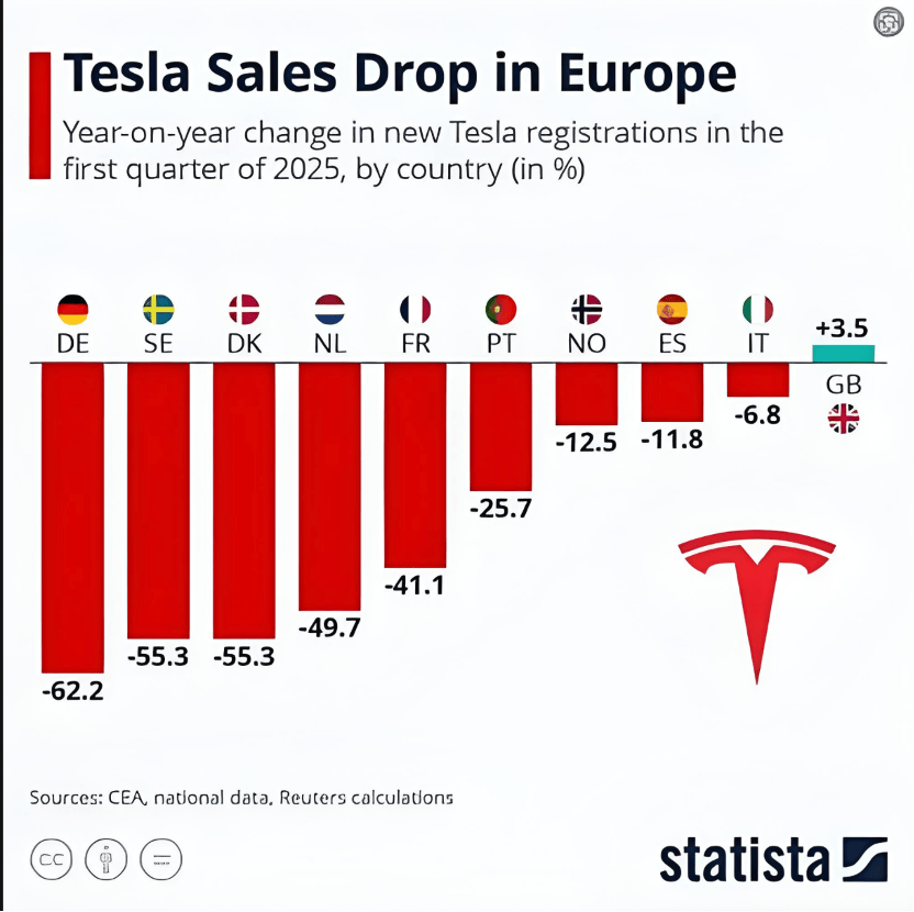 前幾年,國(guó)人幾乎把特斯拉捧上了天,在其粉絲嘴里,更是屢屢將特斯拉吹成“人類(lèi)之光”。 2024 年,特斯拉Model Y以 30,491輛的成績(jī)榮獲上海市銷(xiāo)量冠軍,Model 3則以12,526輛的銷(xiāo)量位居第二,兩款車(chē)?yán)塾?jì)銷(xiāo)量超過(guò)4.2萬(wàn)輛,要知道這還只是上海一個(gè)城市的成績(jī)單。有人甚至放言說(shuō),比亞迪賣(mài)得好還是因?yàn)橹袊?guó)“窮人太多”。但從最新的數(shù)據(jù)看,是不是歐洲人也“窮”了?