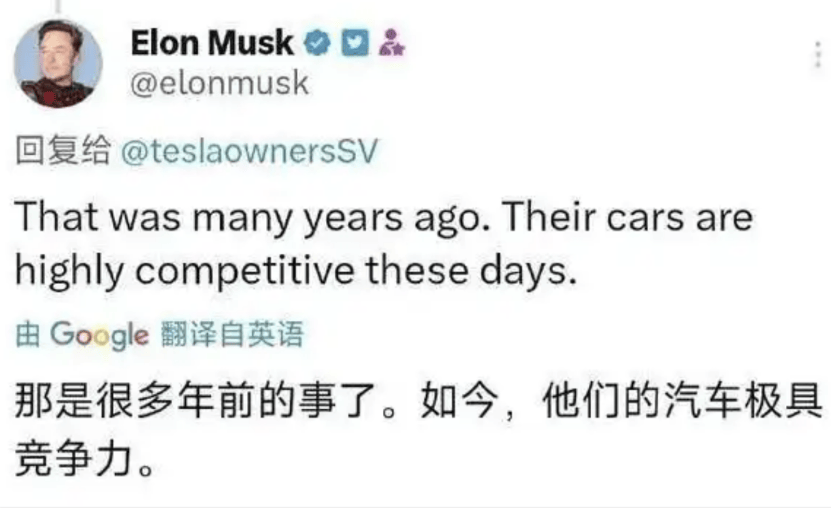反轉(zhuǎn)不要來(lái)得太快!僅僅14年,新能源與電動(dòng)車(chē)已經(jīng)換了人間。雖然在面對(duì)記者們尖銳的問(wèn)題時(shí),曾經(jīng)不可一世的馬斯克還在堅(jiān)持說(shuō):"我始終專(zhuān)注于打造理想中的完美產(chǎn)品,不會(huì)過(guò)度關(guān)注同行動(dòng)態(tài)“。哈哈,好一個(gè)”不關(guān)注“,那是關(guān)注了也是被打臉吧。人家又問(wèn)他,多年前不是說(shuō)"我不認(rèn)為他們能對(duì)行業(yè)格局產(chǎn)生影響。"嗎,到底是做實(shí)業(yè)的鋼鐵俠,他本人后來(lái)在社交媒體上回應(yīng)說(shuō):那是多年前的事了,如今,他們的汽車(chē)極具競(jìng)爭(zhēng)力。