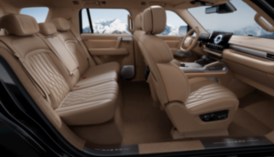 外觀無需多言,非常硬朗并具有自己的特點。內飾豪華感和科技感兼得,金屬脈沖按鍵搭配256色無極呼吸氛圍燈。車身顏色有秦嶺綠、玉龍銀、茶卡藍、鳴沙黃、格宗黑、昆侖白6款配色,內飾有迎松墨、青山黛、丹霞棕3款內飾主題。