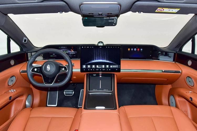 新車采用大5座布局,副駕帶有零重力座椅,支持18向電動調節和靠背10點按摩等功能,前排和后排兩側座椅標配座椅通風、加熱、按摩,包括壓縮機冷暖箱、副駕密碼箱、32英寸巨幕投影、后排小桌板、25揚聲器HUAWEI SOUND音響系統等均出現在新車上。