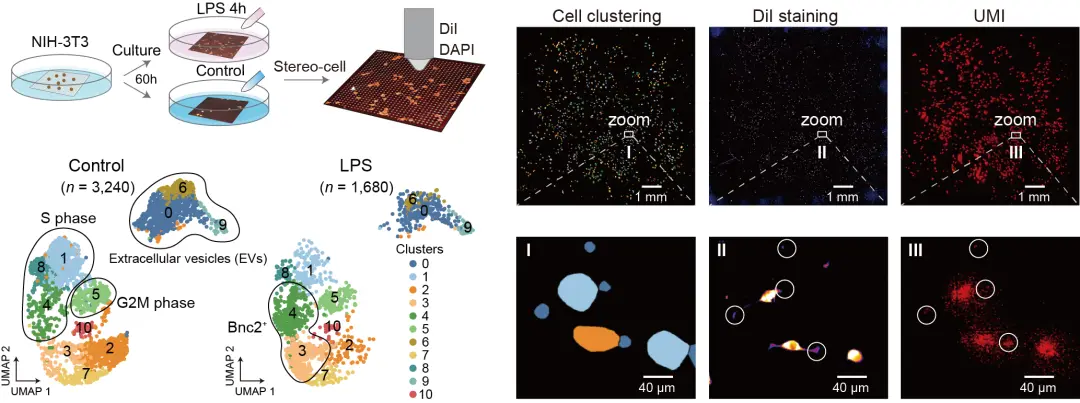 Stereo-cell 基于 DNA 納米球芯片建立實驗流程,實現(xiàn)寬幅細胞投入通量