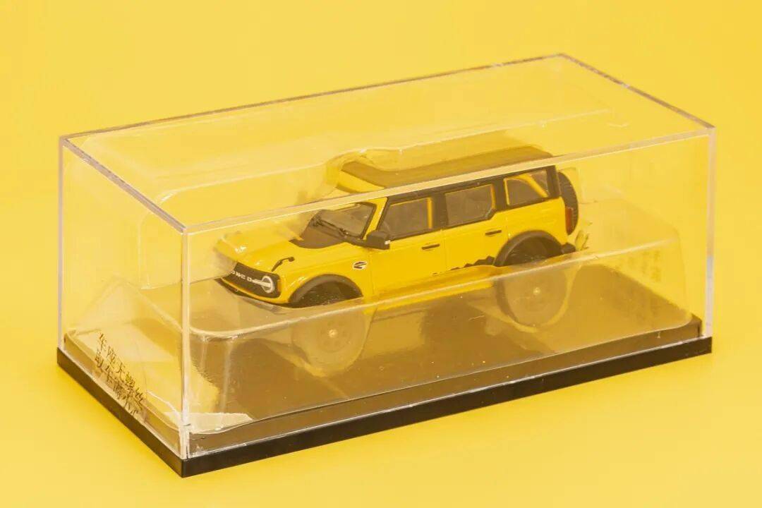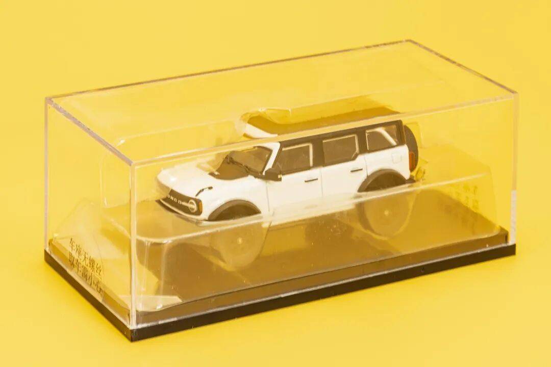 模型采用開口紙?zhí)装b,模型展示面積非常大,這個(gè)也是品牌方根據(jù)玩家的不斷要求而改進(jìn)的結(jié)果;內(nèi)部采用更常見的亞克力罩+塑料底座的方式,底座上的車模信息采用了金屬質(zhì)感的貼紙;模型沒有螺絲固定,只是通過上下開合的吸塑支撐來固定;模型品質(zhì)上乘,而模型的姿態(tài)也較為逼真,細(xì)節(jié)也挺不錯(cuò)的,而且整個(gè)駕駛艙外殼可以去掉,變成一臺(tái)敞篷SUV,再加上擺臂式懸掛,還是挺好玩的。