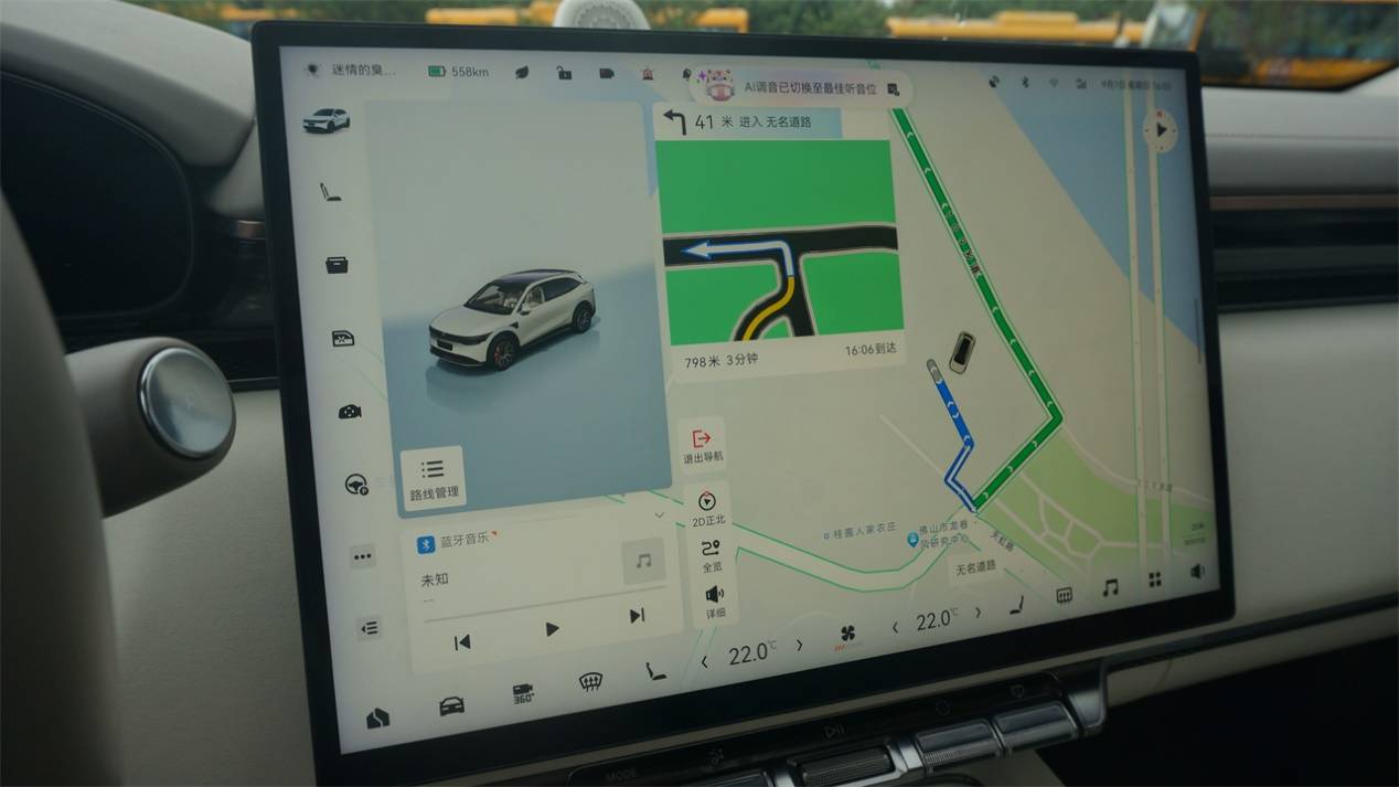 車機(jī)系統(tǒng)也是極氪自家的ZEEKR OS。或許有不少人會更希望用的是魅族系統(tǒng),但至少在我使用的過程里,這套系統(tǒng)還是挺稱職的。標(biāo)志性的雙Dock設(shè)計,雖然視覺上有些繁瑣,但的確能省去不少找功能的麻煩。流暢性也過關(guān),以3D車模為主頁的界面觀賞性也很好,將導(dǎo)航作為首頁時還有SR渲染卡片,至少在交互上它很難挑出什么大的毛病。