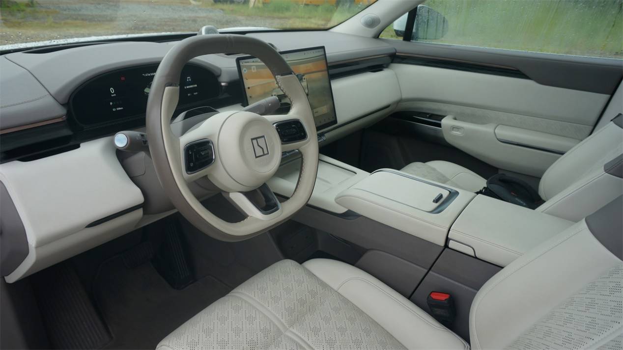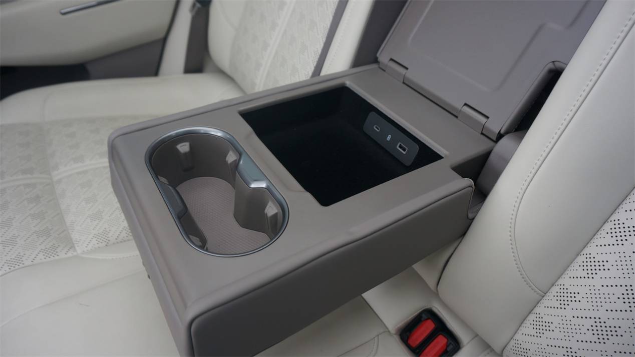 又譬如扶手箱,借鑒了蔚來的設(shè)計,兩側(cè)都帶有開關(guān),使得扶手箱的蓋板既能從主駕一側(cè)打開,也能從副駕一側(cè)打開。扶手箱雖然容積不大,但帶有電子鎖,可以當(dāng)成存放貴重物品的“保險柜”來使用。“卷”度之高不言而喻。