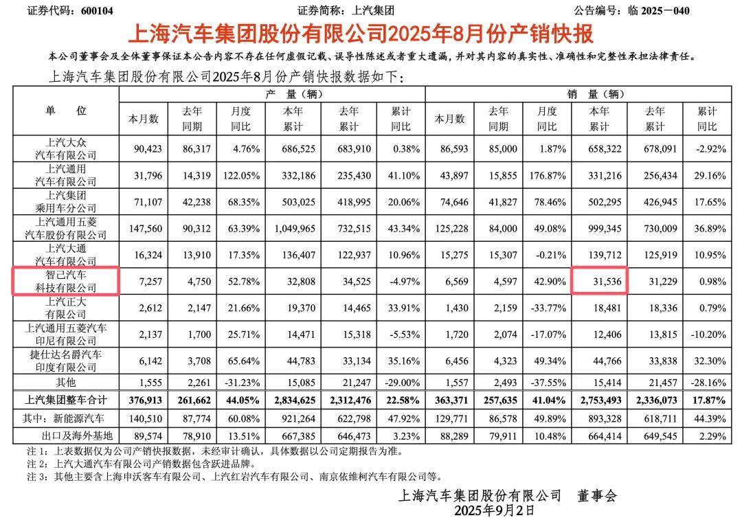 你看上汽集團9月初公布的8月份產銷快報:今年前八個月,智己只賣出了3.15萬輛,是上汽集團國內整車業務板塊中銷量占比最低的品牌。
