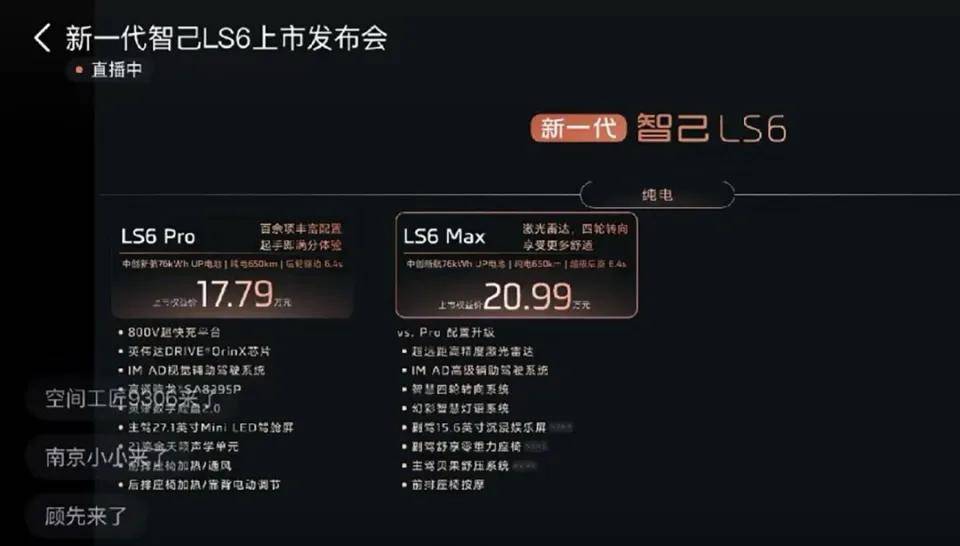 是的,你沒看錯。在公布價格環節,發布會的直播畫面,出現了LS6 Pro 17.79萬元的畫面,但在最后展示的所有車型價格里,LS6 Pro的售價又變成了19.79萬。