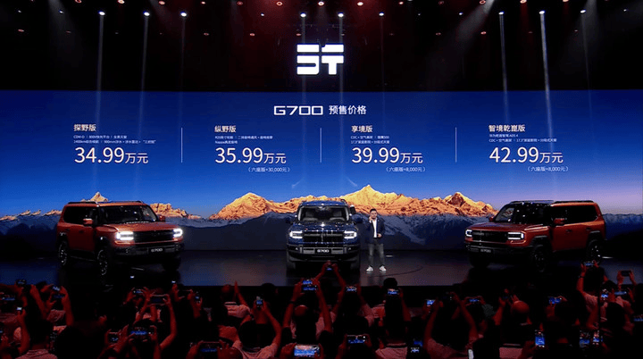 從市場(chǎng)來(lái)看,G700的預(yù)售價(jià)處于合理區(qū)間。參考來(lái)看,同級(jí)的方程豹豹8、坦克700Hi4-T也均處于40萬(wàn)級(jí),而國(guó)產(chǎn)的指導(dǎo)起售價(jià)甚至比G700頂配還要高。