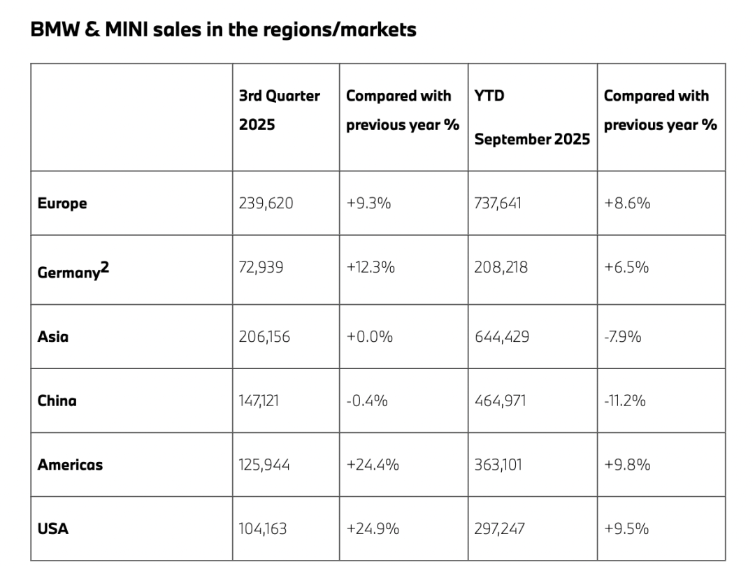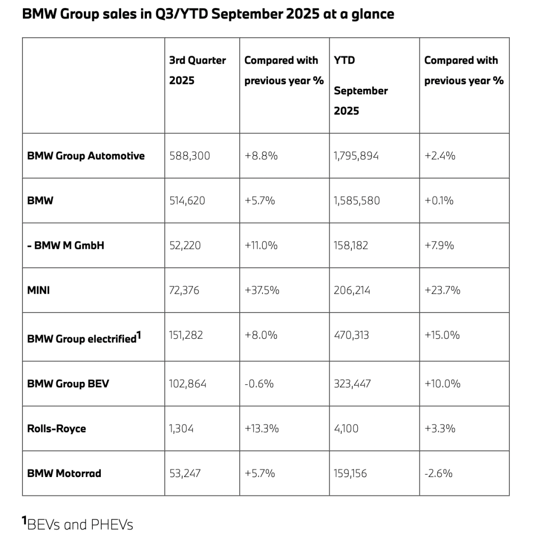 - 2025第三季度寶馬集團(寶馬+MINI+勞斯萊斯)繼續保持增長態勢,交付量同比上升8.8%,達588,300輛