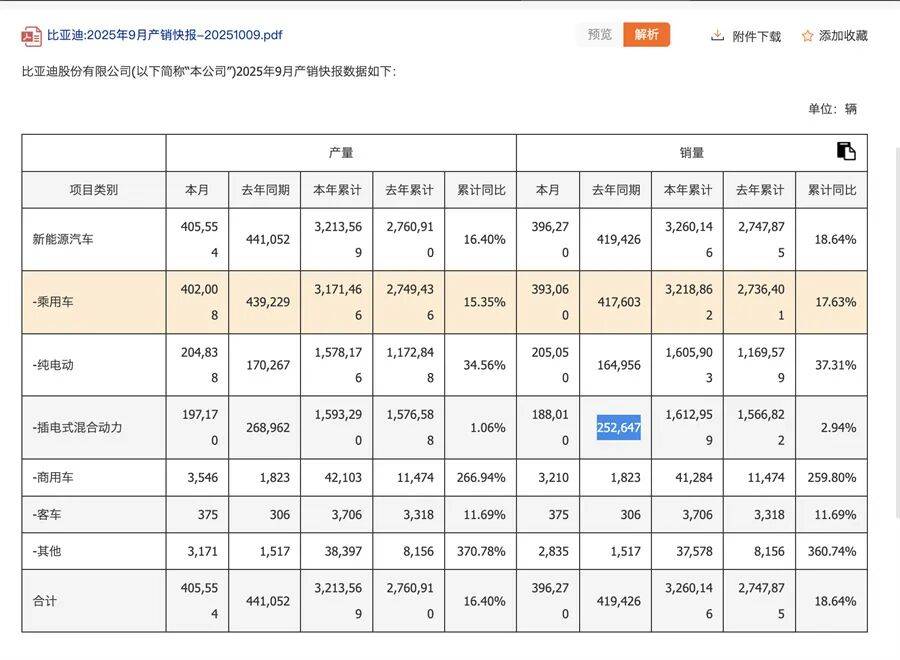 與此同時,從銷量結構上來看,插混的乏力是比亞迪銷量回落的重要原因。今年9月,比亞迪插電混動車型銷量188,010輛,相比去年同期252,647輛的表現簡直天差地別。這背后也有行業因素,數據顯示,今年上半年,中國市場插混車型累計銷量252.1萬輛,同比增長31.1%,而2024年,插混車型銷量有83.3%的增速表現,插混的回落已經成為定局,比亞迪自然無法避免被殃及。