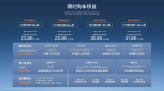10月11日,豪華獵裝轎跑煥新極氪001正式上市,官方零售價26.98萬元起,超級置換權(quán)益后限時售價為25.98萬元起。這款開創(chuàng)了"全能獵裝"細分市場的標桿車型,在傳承經(jīng)典設(shè)計的同時,實現(xiàn)了從三電系統(tǒng)到智能科技的全面革新。