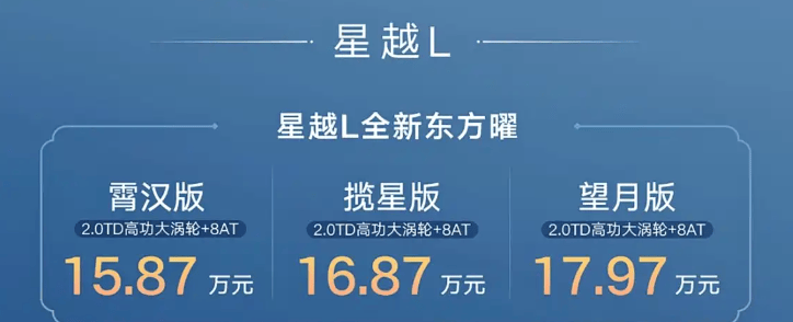 2026款吉利星越L東方曜以14.57萬起的限時售價,攜2.0T高功率動力與智能配置升級入市,三款配置各有側重,選對不花冤枉錢。