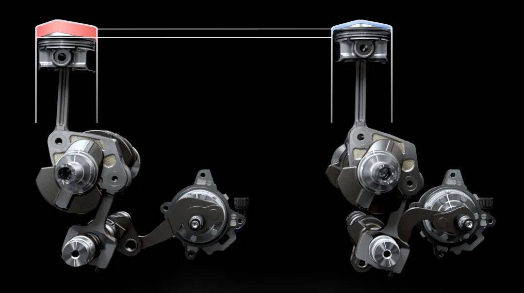 8.0:1的壓縮比相對(duì)較低,盡管對(duì)渦輪增壓發(fā)動(dòng)機(jī)而言屬于常規(guī)水平,而14.0:1的壓縮比則極高,即便是對(duì)自吸發(fā)動(dòng)機(jī)來(lái)說(shuō)也不常見(jiàn)。當(dāng)駕駛員需要最大動(dòng)力輸出時(shí),多連桿機(jī)構(gòu)會(huì)切換狀態(tài),使發(fā)動(dòng)機(jī)以最低壓縮比運(yùn)行。而在低負(fù)荷工況下,由于進(jìn)入發(fā)動(dòng)機(jī)的空氣和燃油量減少,爆震風(fēng)險(xiǎn)降低,機(jī)構(gòu)會(huì)再次切換至高壓縮比模式。