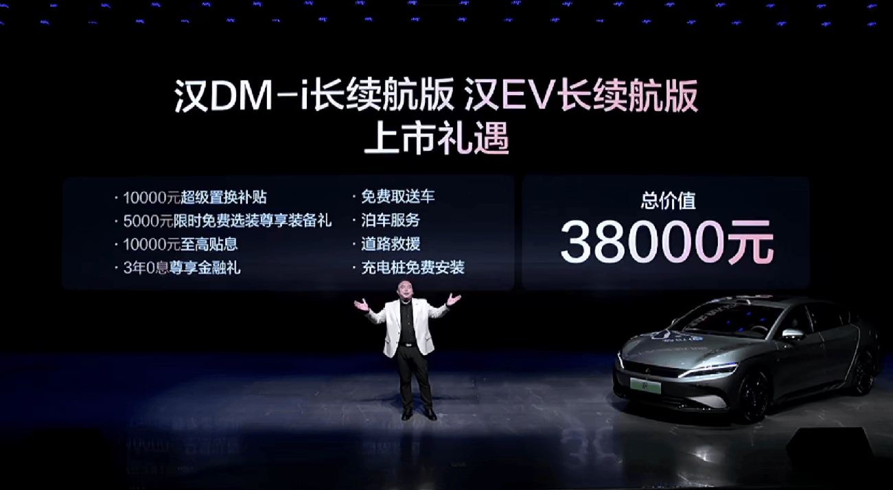首先,價格層面,作為累計銷量破百萬的車型,漢家族始終致力于為用戶打造高品質出行體驗。此番漢DM-i長續(xù)航版共推出4款車型,補貼后售價15.98萬~18.98萬元;漢EV長續(xù)航版共推出3款車型,補貼后售價17.38萬~20.58萬元,10月31日前完成購車可享1萬元超級置換補貼。同時,比亞迪還為用戶準備了包含置換補貼在內(nèi)的至高價值3.8萬元七大禮遇。