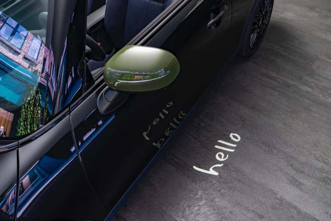 這種幽默感,是這臺車區別于所有冰冷工業品的靈魂所在。在當下的汽車設計中,我們看到了太多的“科技感”和“未來感”,卻唯獨少了“人味兒”。而MINI Paul Smith設計師款則在每一個交互瞬間都在試圖與人建立情感連接。當你拉開車門,地面上投影出的“Hello”以近乎手寫的姿態出現,不僅是一個迎賓燈,更像是老友之間一聲溫暖的問候,它在這一瞬間消解了人與機器之間的隔閡。